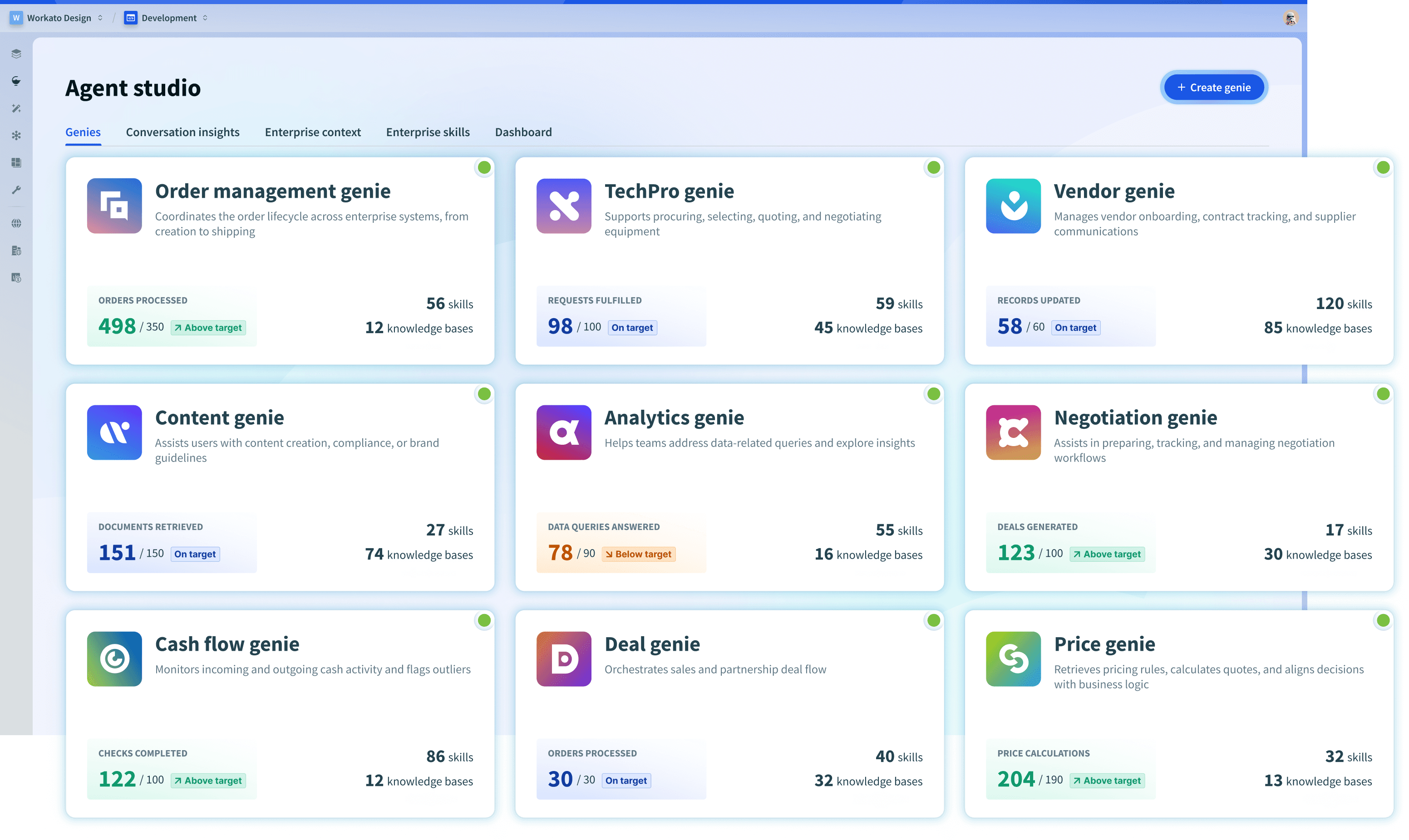 Pre-integrated with 1,200+ enterprise apps, genies are built for power and flexibility.